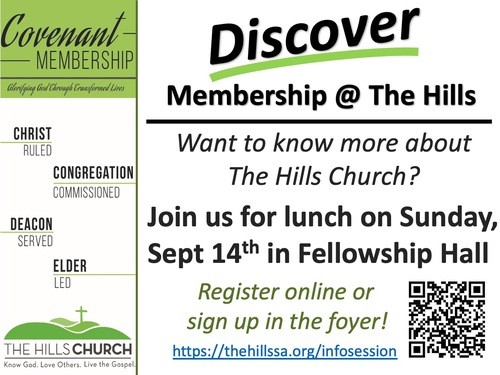 Interested in joining The Hills Church as a member? Come join us at our next Covenant Membership Information Session!