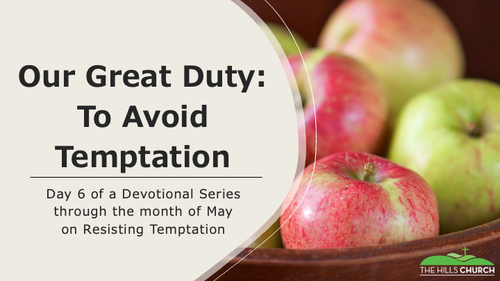 We must be constant in our diligence to avoid temptation. We must not flirt with it or taunt it as if we can play with temptation and not be overtaken by it. Our call before we even face temptation is to avoid it. We must diligently pray that God would not lead us into temptation, that He would guide our paths to righteousness and not to destruction. And we must diligently act to avoid the paths that would lead us to temptation.